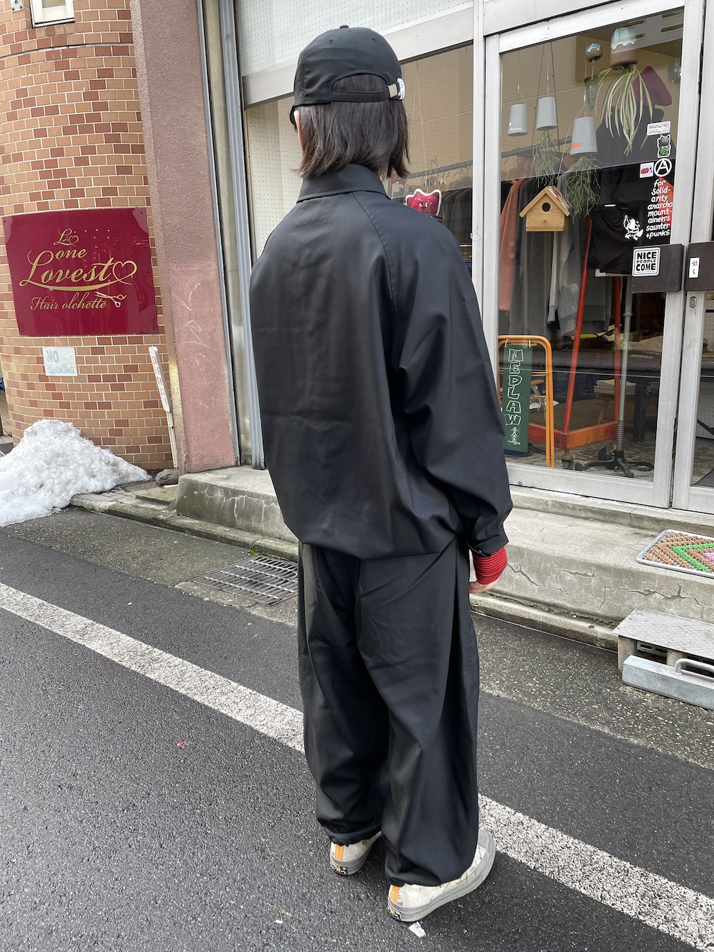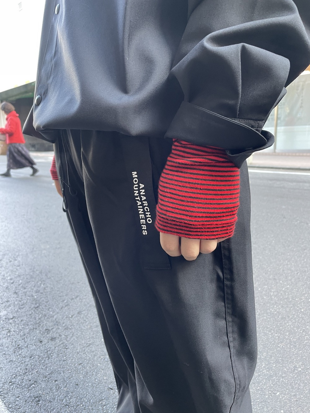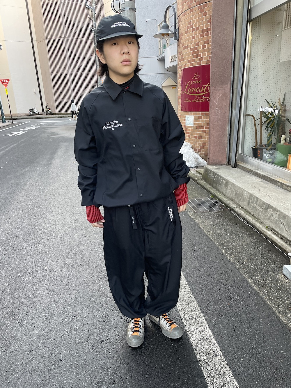 コーチジャケット型のシャツと、クライミングパンツの源流とも言われる道着の名を持つイージーバギーパンツ。
