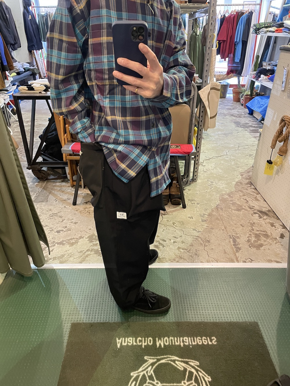 サイズを上げて穿いてもらうと丈上げ要らずの絶妙な良い具合になる不思議なパンツ。
