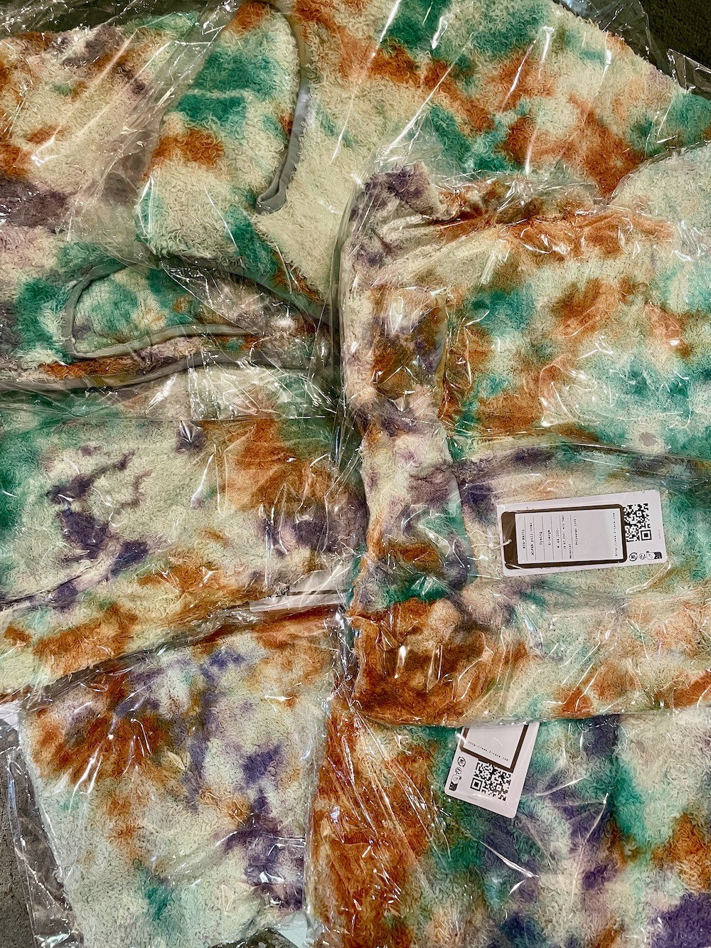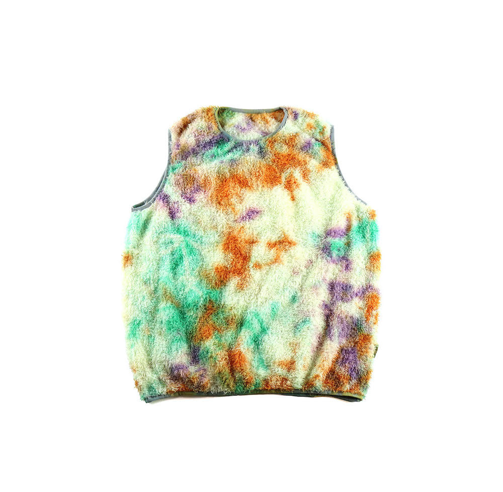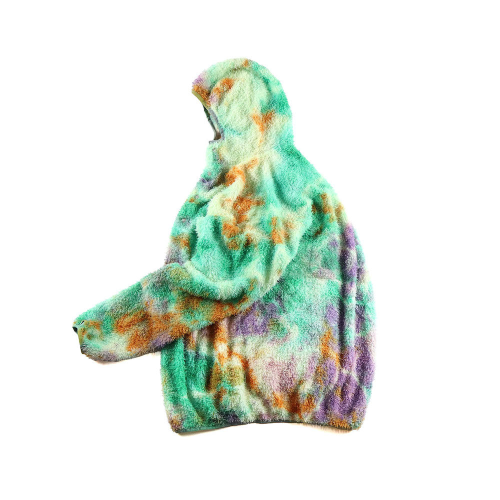 縫製後に、4回の絞染でタイダイ風に仕上げました。